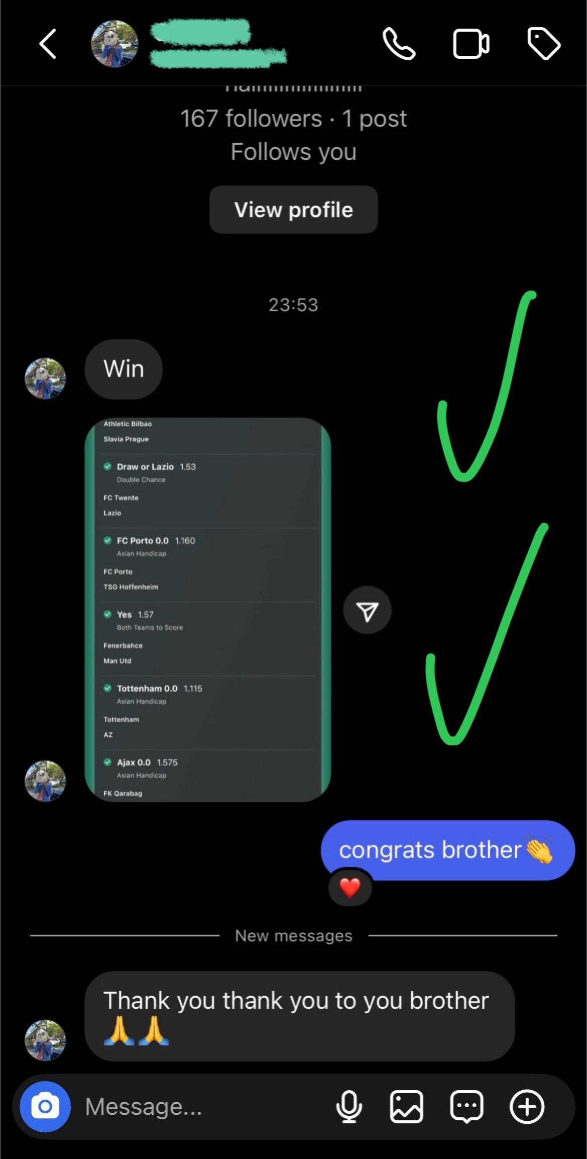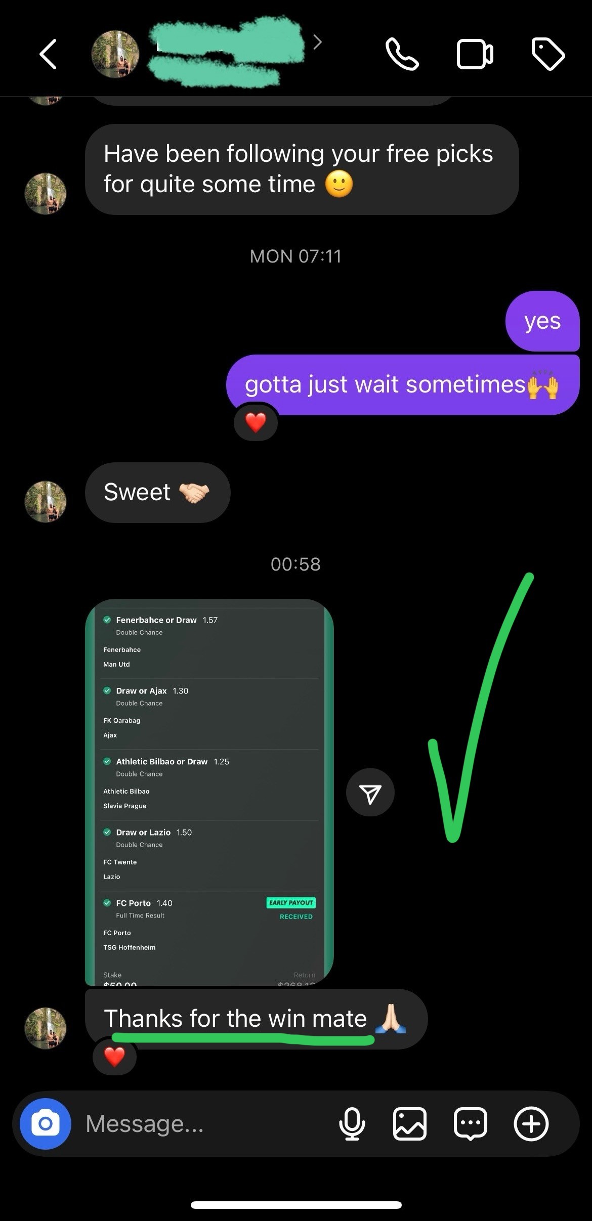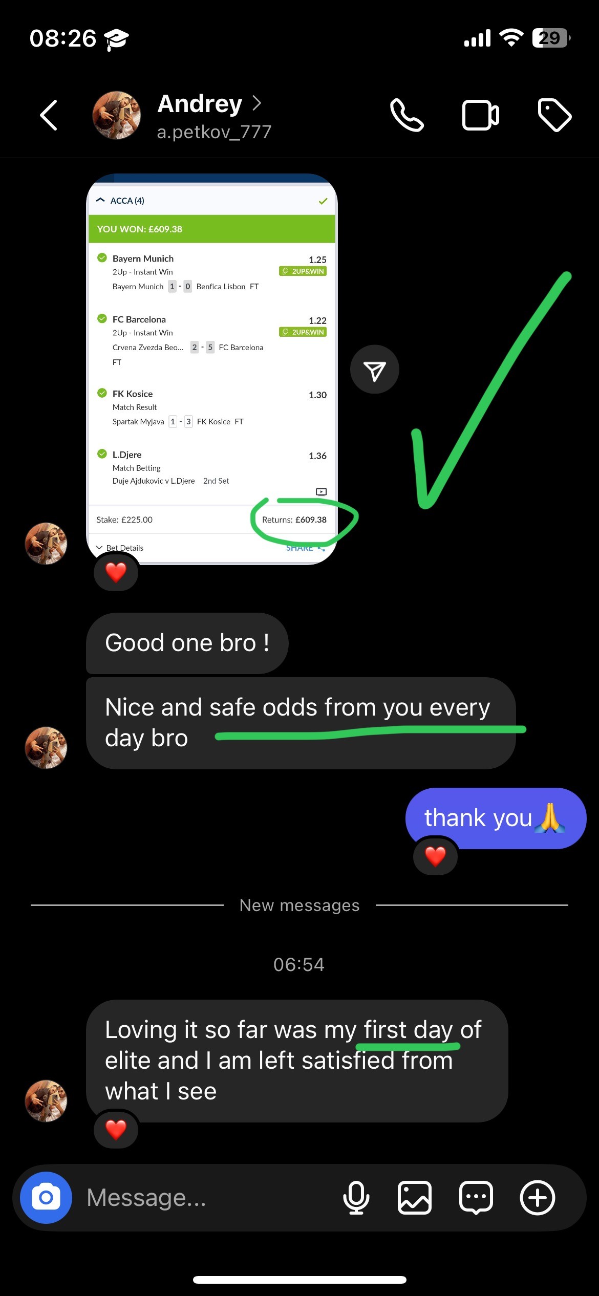 After the event, I post the final result directly in the VIP group. Winning bets are clearly marked and all results are recorded for transparency.